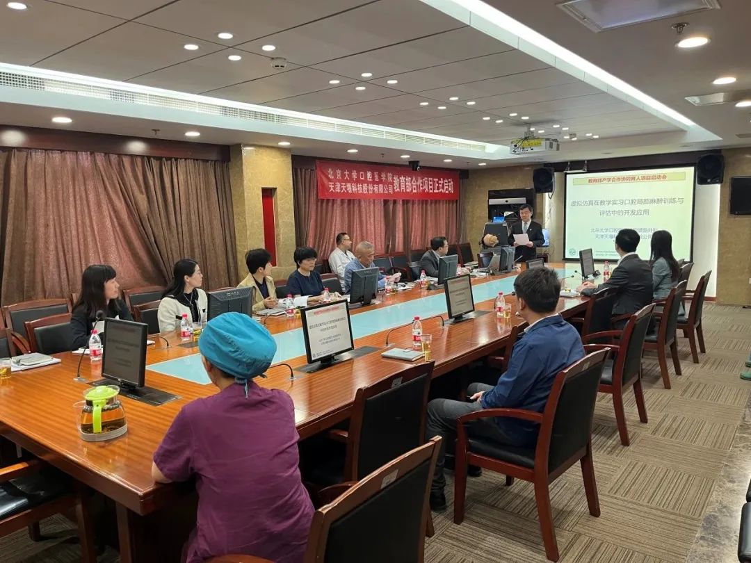 2023年4月24日,在这个春光明媚的日子里,北京大学口腔医院(北大口腔)与星空平台(天堰科技)召开“虚拟仿真在教学实习口腔局部麻醉训练与评估中的开发应用”项目启动会。北大口腔副院长李铁军、中华口腔医学会副秘书长刘宏伟、北大口腔教育处长董美丽、虚拟仿真教研室主任侯建霞、口腔颌面外科副主任贺洋、天堰科技总经理刘雁飞、天堰科技口腔事业部总经理景颖等人出席,在项目总负责人崔念晖主任主持下,双方展开了热烈而有成效的会晤,确定该项目正式启动。